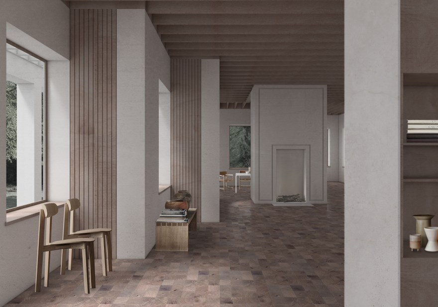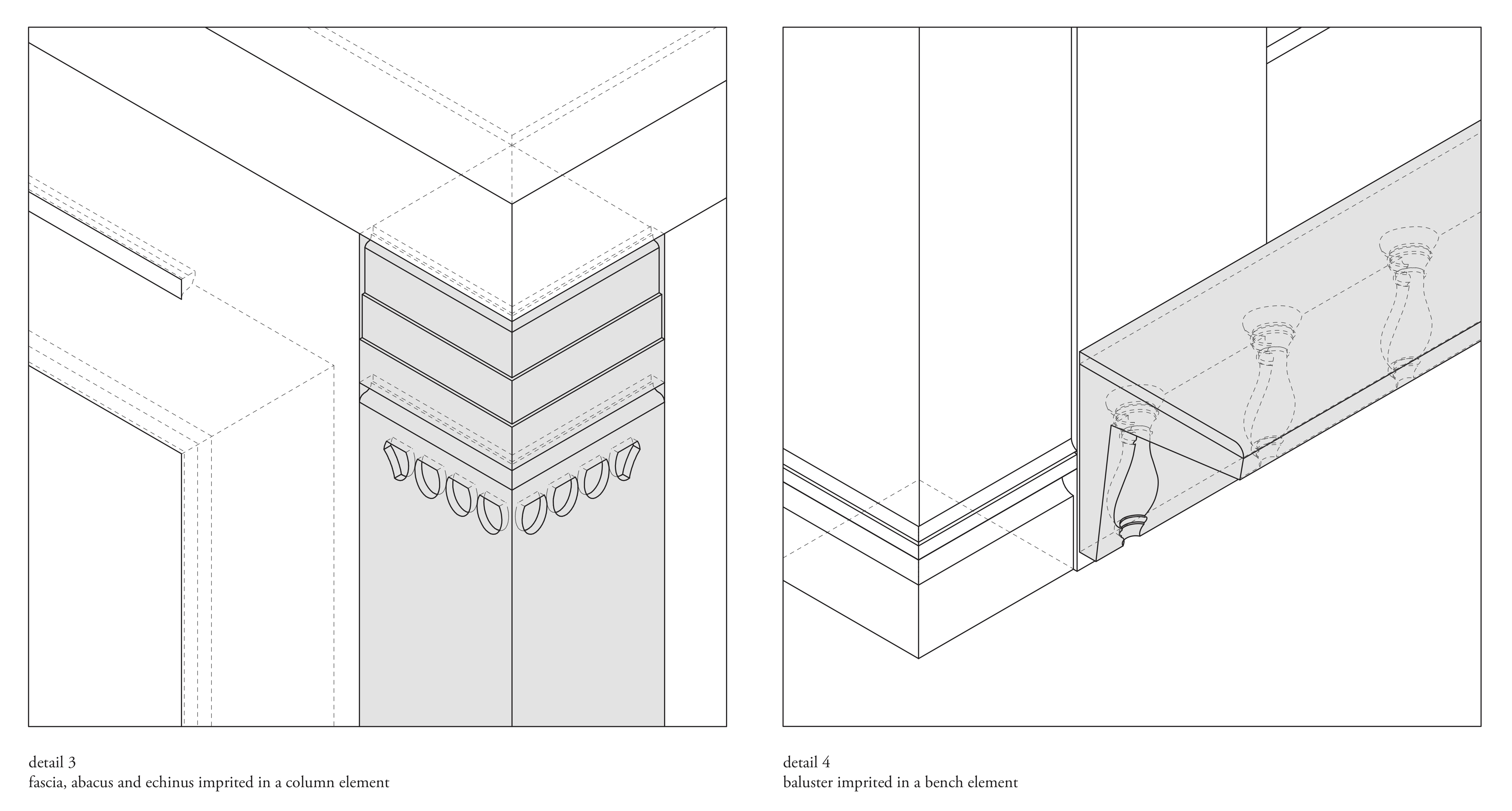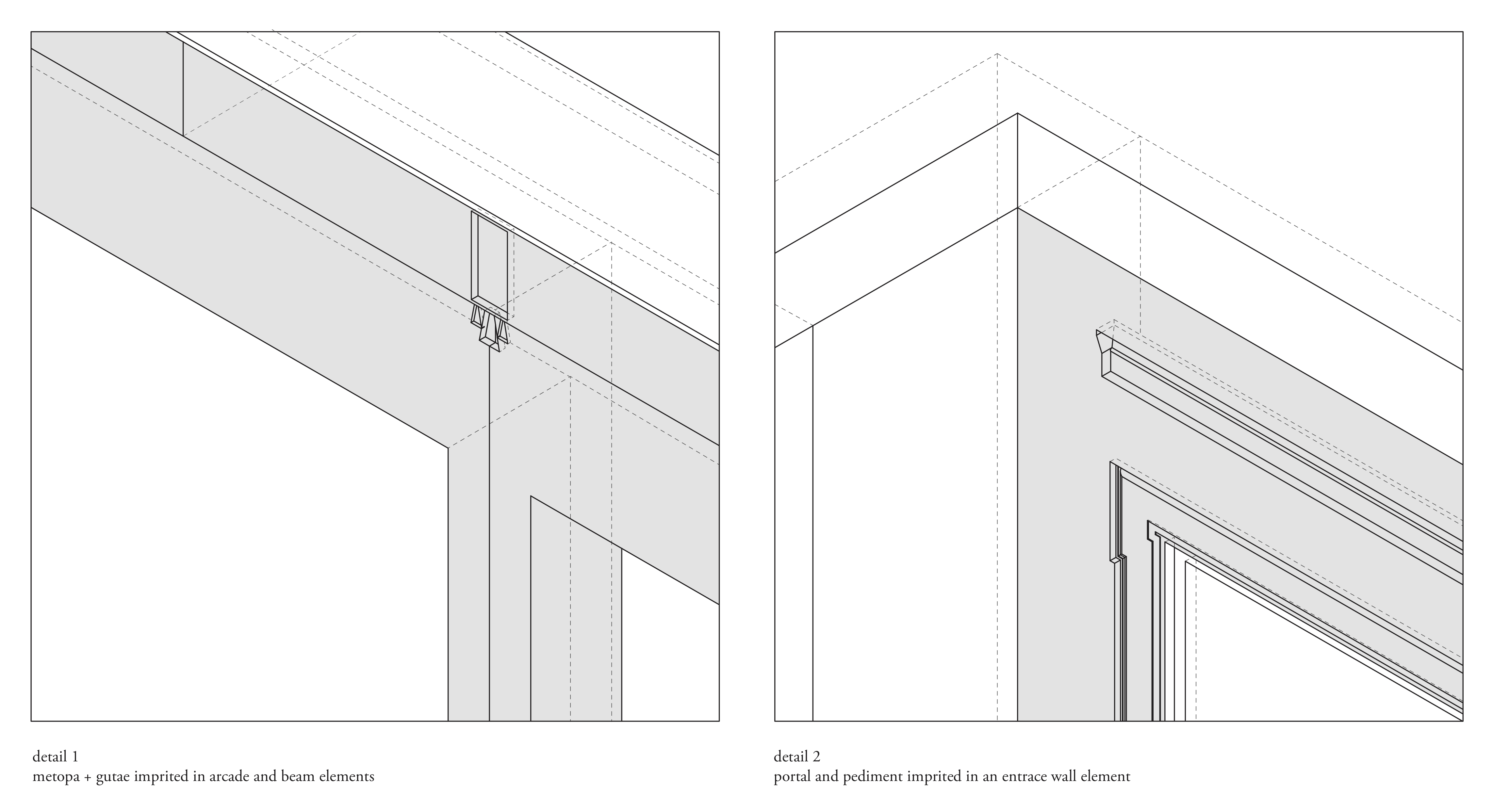 The project aims to evoke a feeling of being inside and outside at the same time. Recreating the spatial conditions of the palaces interior, by analysis and reinterpretation of the principle that they have been based on.